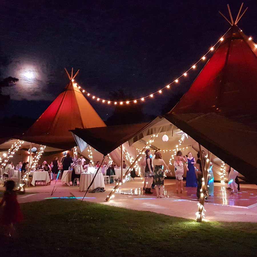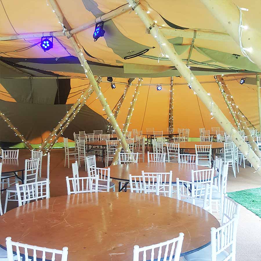 Warm, atmospheric interior lighting to create a cosy, inviting ambience throughout your tipi space.